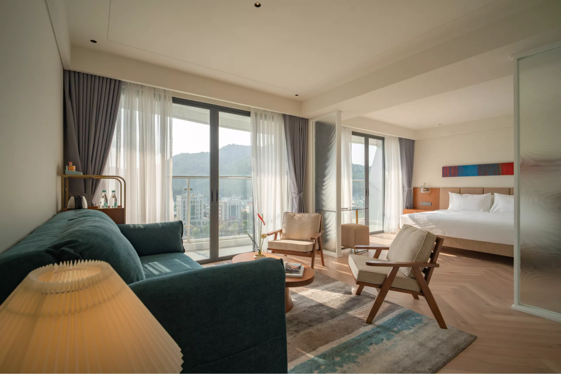 Với thiết kế thông phòng linh hoạt, phòng gồm một giường đôi 2m x 2m và hai giường đơn 1m x 2m, mang đến không gian rộng rãi và kết nối tiện lợi. Ban công riêng hướng quảng trường, núi, thành phố, giúp bạn tận hưởng không khí trong lành ngay tại phòng. Được trang bị TV thông minh, minibar, két sắt, bàn làm việc, wifi tốc độ cao và phòng tắm vòi sen, phù hợp cho những chuyến đi cùng gia đình hay nhóm bạn thân.