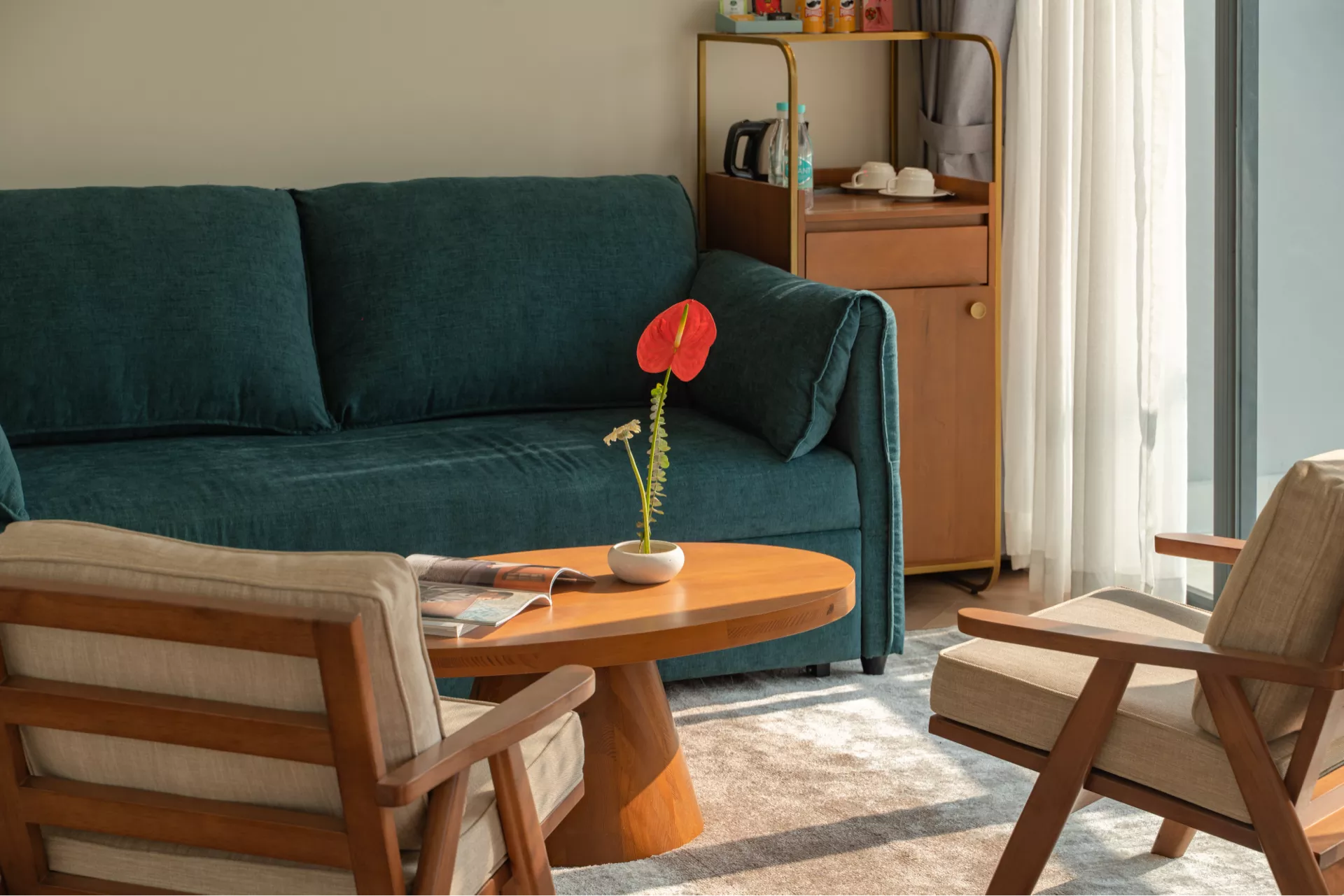 Nơi không gian sang trọng nhưng dễ chịu, thẩm mỹ cao nhưng không quá cầu kỳ, tiện nghi và ấm cúng lấy cảm hứng thiết kế từ hai phongcách Mid-Century và Japandi Style.