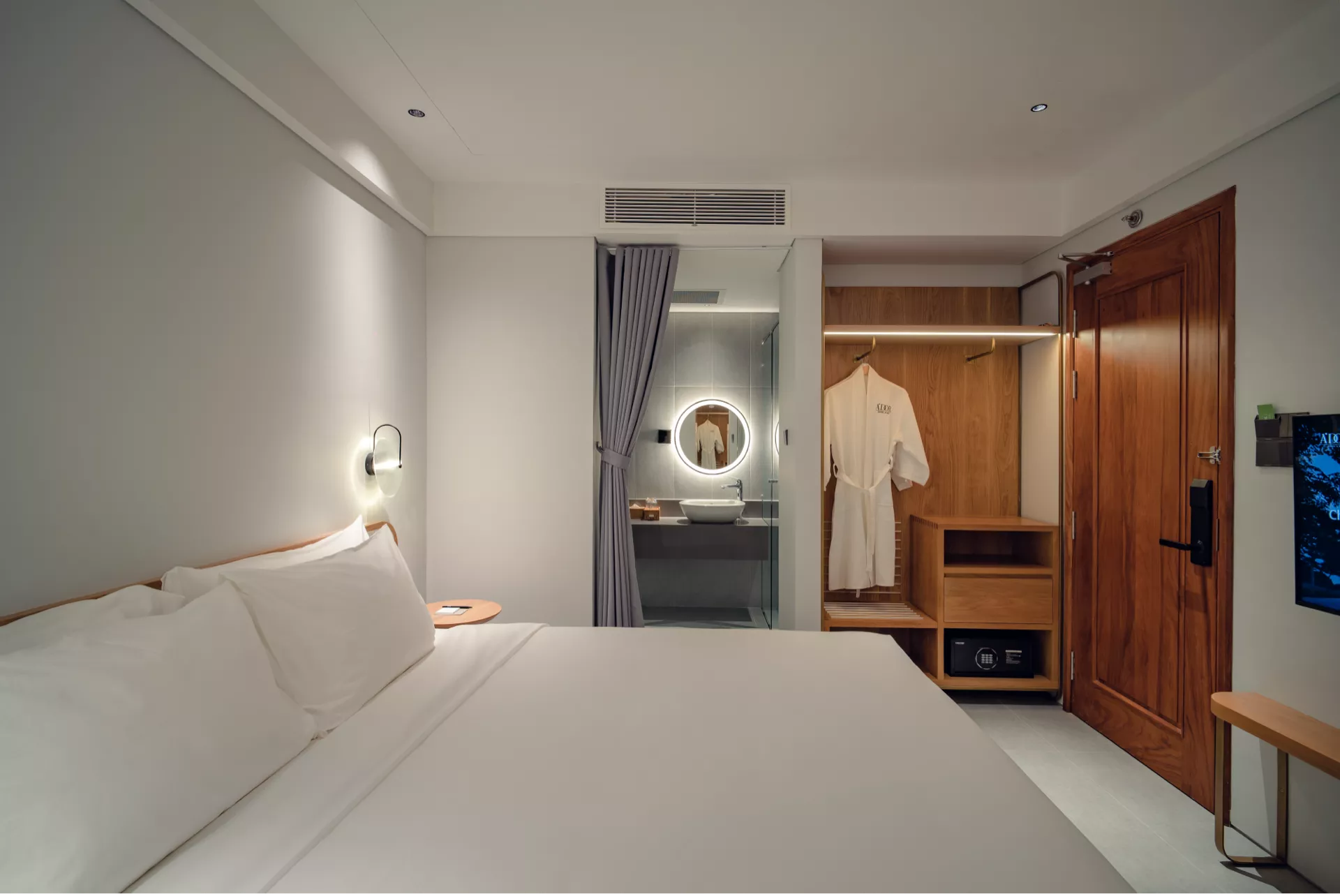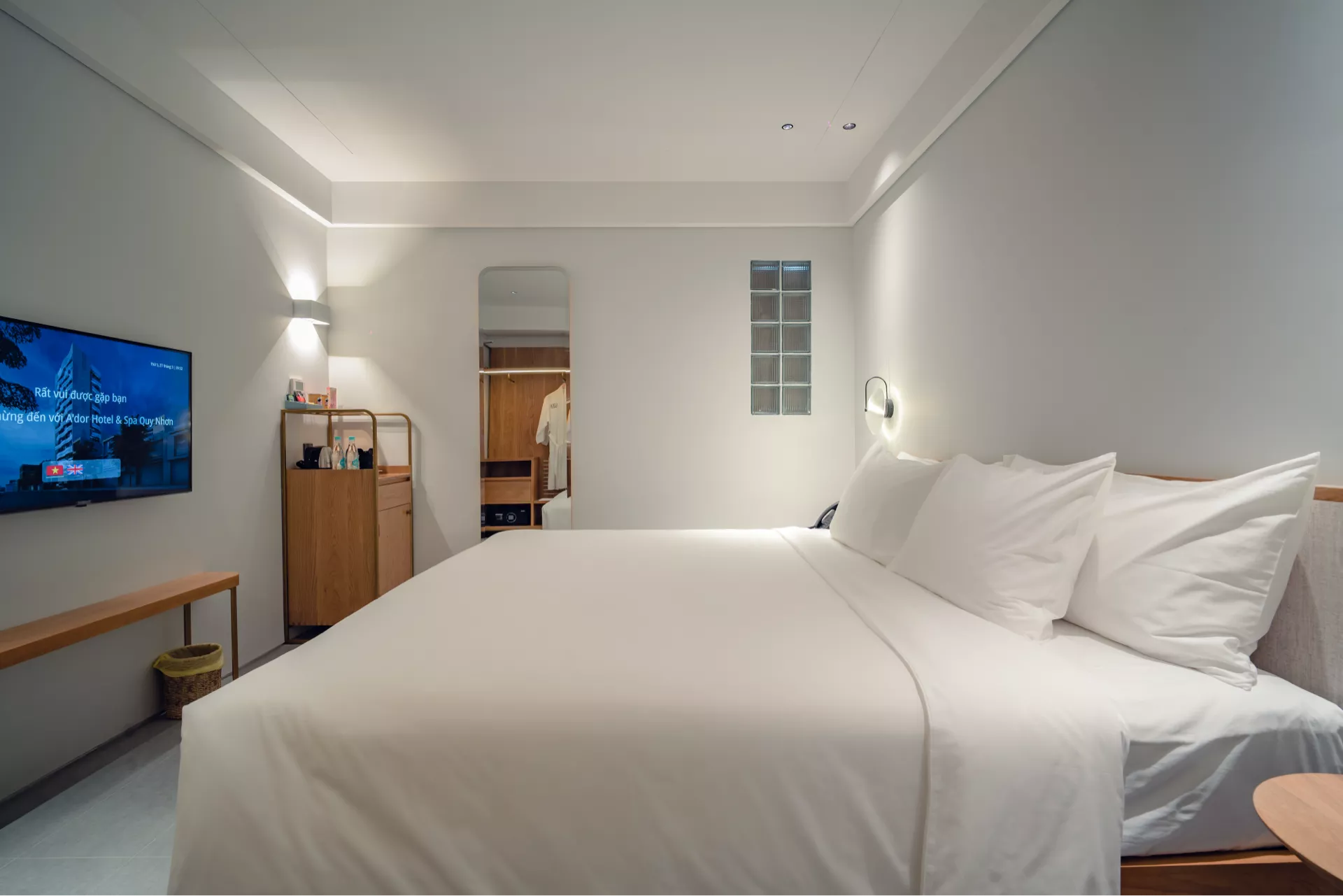 Là lựa chọn hoàn hảo cho những ai yêu thích sự yên tĩnh, phòng được trang bị giường đôi êm ái 2m x 2m cùng đầy đủ tiện nghi như TV thông minh, minibar, két sắt và bàn làm việc. Dù không có view, không gian ấm cúng và thiết kế hiện đại vẫn mang đến cảm giác thoải mái tuyệt đối. Phòng tắm với vòi sen giúp bạn tận hưởng những phút giây thư giãn trọn vẹn.